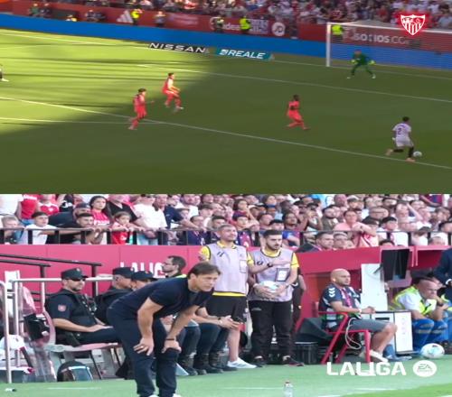 振臂欢呼+拥抱阿古梅!塞维利亚回顾击败巴萨时主帅反应